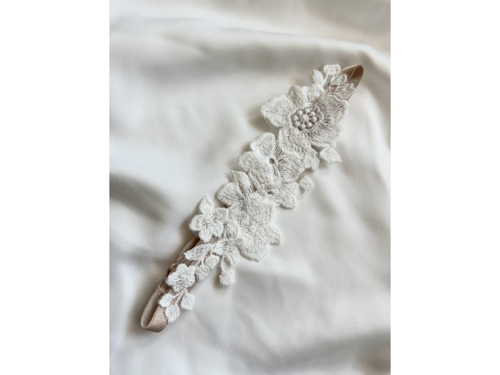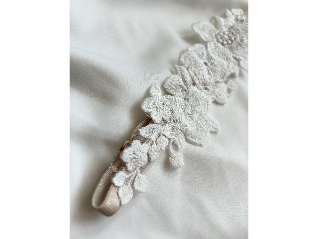 Podvazek je vytvořený z krásné vyšívané krajky v ivory odstínu a z tělové pruženky.